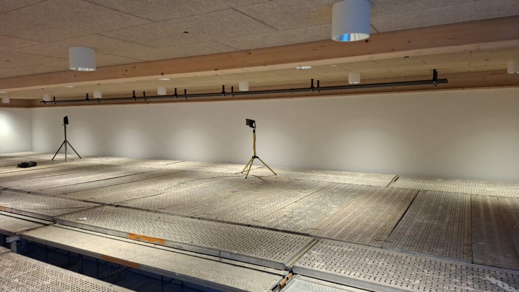 Bereits im Dezember 2025 wurden die Rohre für die Bühnentechnik montiert, an denen später Licht- und Tontechnik befestigt werden können. Damit ist ein wichtiger Grundstein für zukünftige Veranstaltungen gelegt.